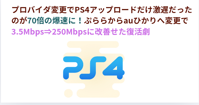 プロバイダ変更でPS4アップロードだけ激遅だったのが70倍の爆速に!ぷららからauひかりへ変更で3.5Mbps⇒250Mbpsに改善せた復活劇